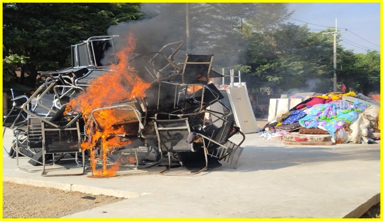 Not to reuse the materials in the online scams and gambling activities in KK Park and Shwe Kokko areas, the seized materials were incinerated systematically. Moreover, the Illegal Foreigner Investigation Team verified the foreign nationals detained in the above areas. The relevant departmental combined teams are carrying out the necessary processes, including collecting personal data and recording required documentation to enable their prompt repatriation to their respective countries as quickly as possible.