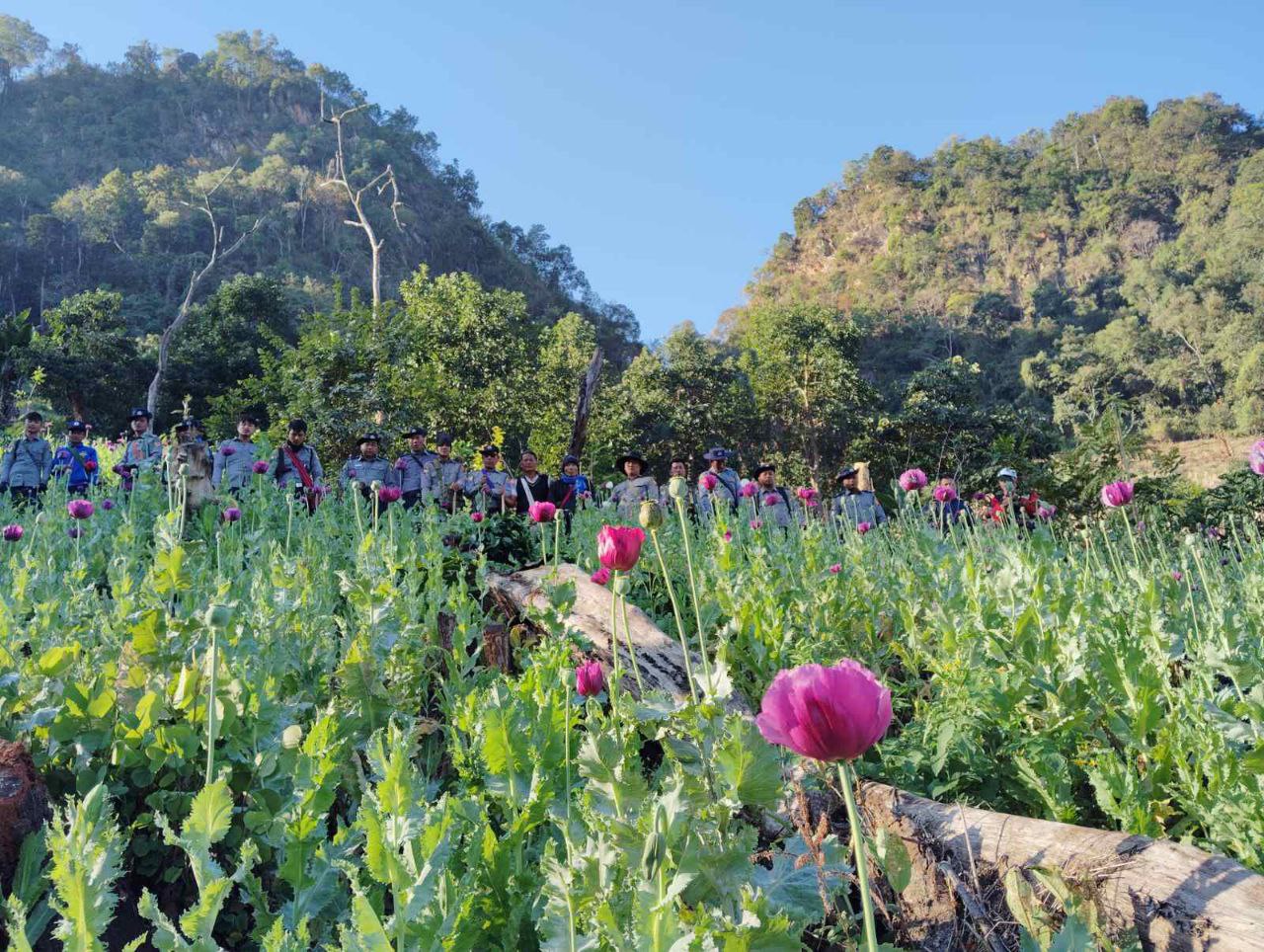 Police have destroyed poppy fields near Htamh E Village in Hopong Township, located in the Pa-O Self-Administered Zone of southern Shan State, at 6:30 a.m. on 9 January, according to the Myanmar Police Force.