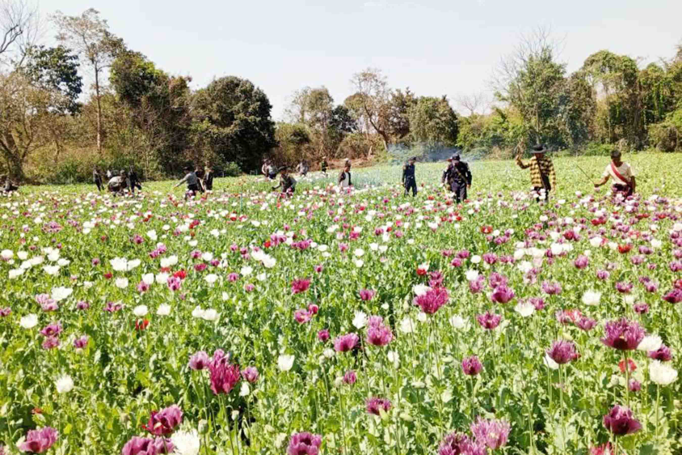 A combined team led by Police Deputy Superintendent Win Zaw Oo and his team members, the Acting Police Chief of Hsihseng Township, Tatmadaw personnel from the local military base and departmental officials carried out the eradication of the poppy fields. Among the destroyed plantations were 11 acres of blooming poppies, approximately three feet tall, situated about two miles northeast of Lwemant Village in Hsihseng Township.
