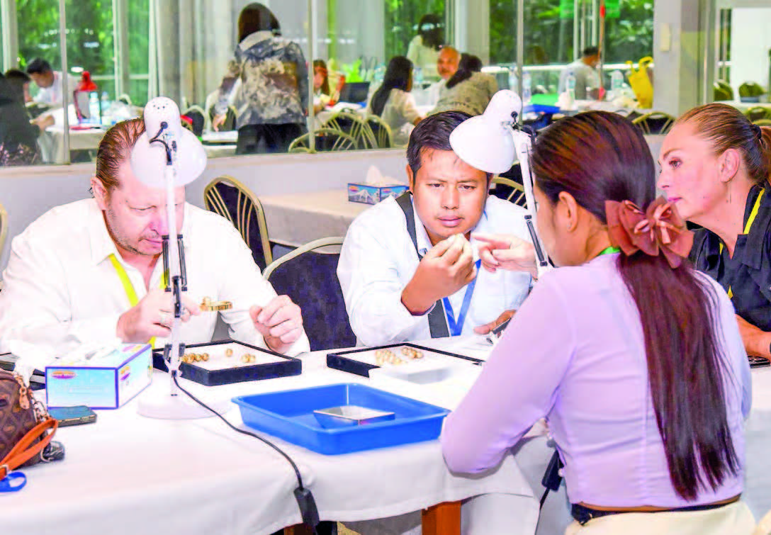 The second day of the 142nd Myanmar South Sea Pearl Emporium 2024 was held yesterday morning at Maniyadana Jade Hall in Nay Pyi Taw. Local and foreign traders were inspecting the pearl lots displayed for sale inside the hall.