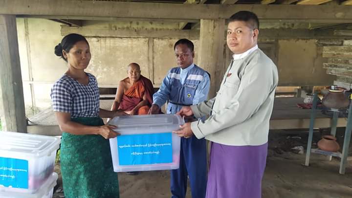 The disaster victims became relocated due to riverbank erosion of the Chindwin River on 22 and 26 July. Chairman of the township management committee Township Administrator U Thet Myint Oo and Assistant Director of the Department of Disaster Management U Than Win Soe Ks. 102,100 each and relief items to four families of the victims.