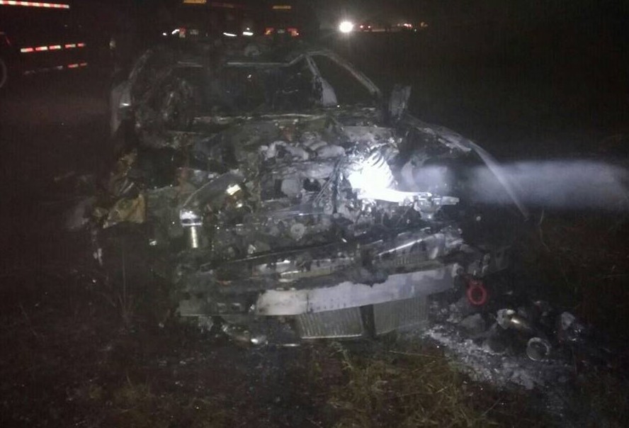 The accident took place between mileposts 12/7 and 13 on the Yangon-Mandalay Expressway in Hlegu Township, Yangon Region at about 11:10 p.m. on 15 December. A car driven by a man identified as Kyaw Tin Win, 38 years old crashed into a concrete median strip, overturned and caught fire after he lost control of the car. The car was badly damaged by the fire which had ceased 20 minutes later.