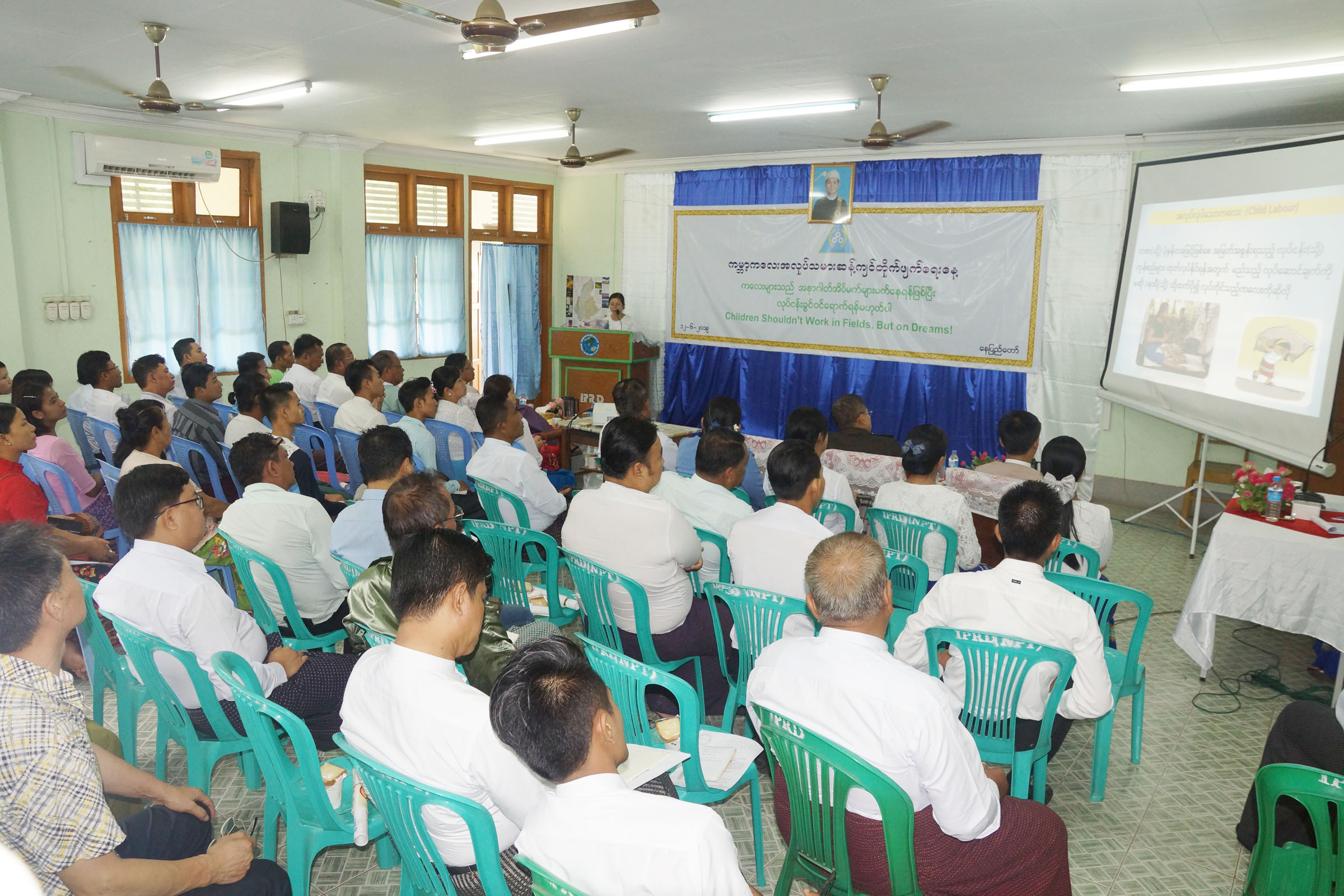 A ceremony to celebrate 2019 world day against child labour was held under the supervision of Factory and General Labour Laws Inspection Department of Nay Pyi Taw Council Area at the community center of Pyinmana Township Information and Public Relations Department this morning.