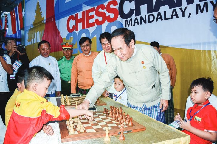 The championships kicked off with a first move by Union Minister Dr. Myint Htwe.
