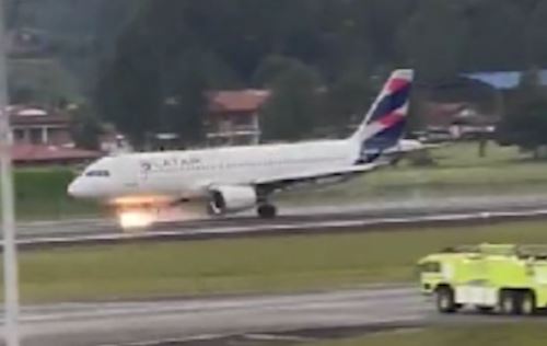The front landing gear of the LATAM Airlines Airbus A320-200 fell off shortly after takeoff on Tuesday afternoon, forcing the plane to turn back for an emergency landing at the Jose Maria Cordova International Airport in the town of Rionegro.