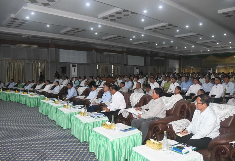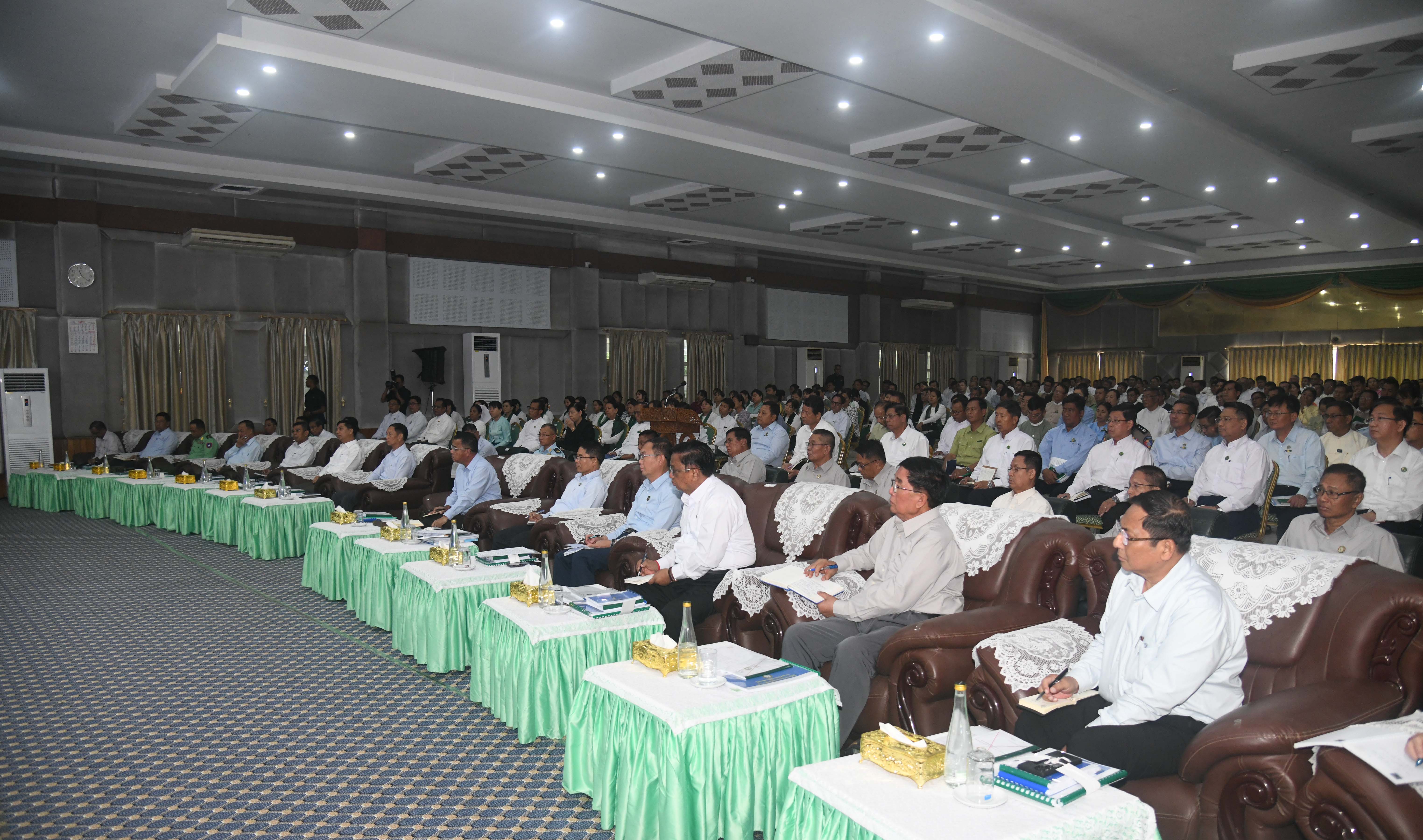 Magway Region Chief Min­ister U Tint Lwin reported on agricultural activities in Mag­way Region, implementation of solar-powered river pumping projects, cultivation of trees to reduce heat in Chauk Town­ship, establishment of librar­ies at basic education schools, enhancement of health sector, supply of water for consump­tion and greening movements, development of MSME in the region, efforts to meet the target production and yield of crops, disbursement of loans to devel­op MSME businesses, holding MSME expos and opening of industrial, agriculture and live­stock schools.