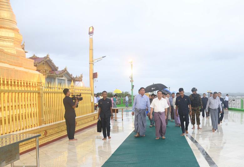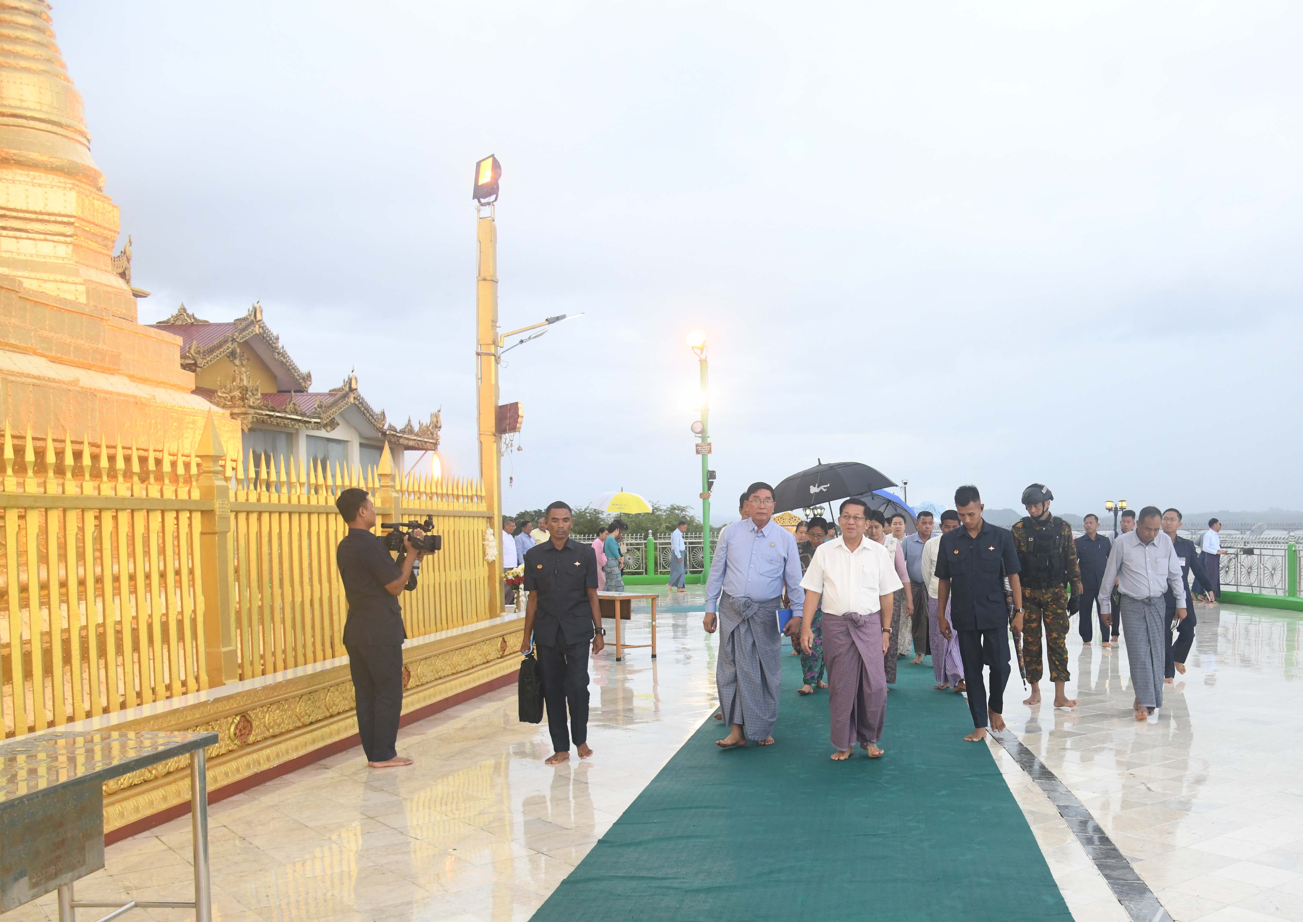 The Senior General, his wife Daw Kyu Kyu Hla, and the party paid homage to Magway Myath­alun Pagoda and offered flowers and water.