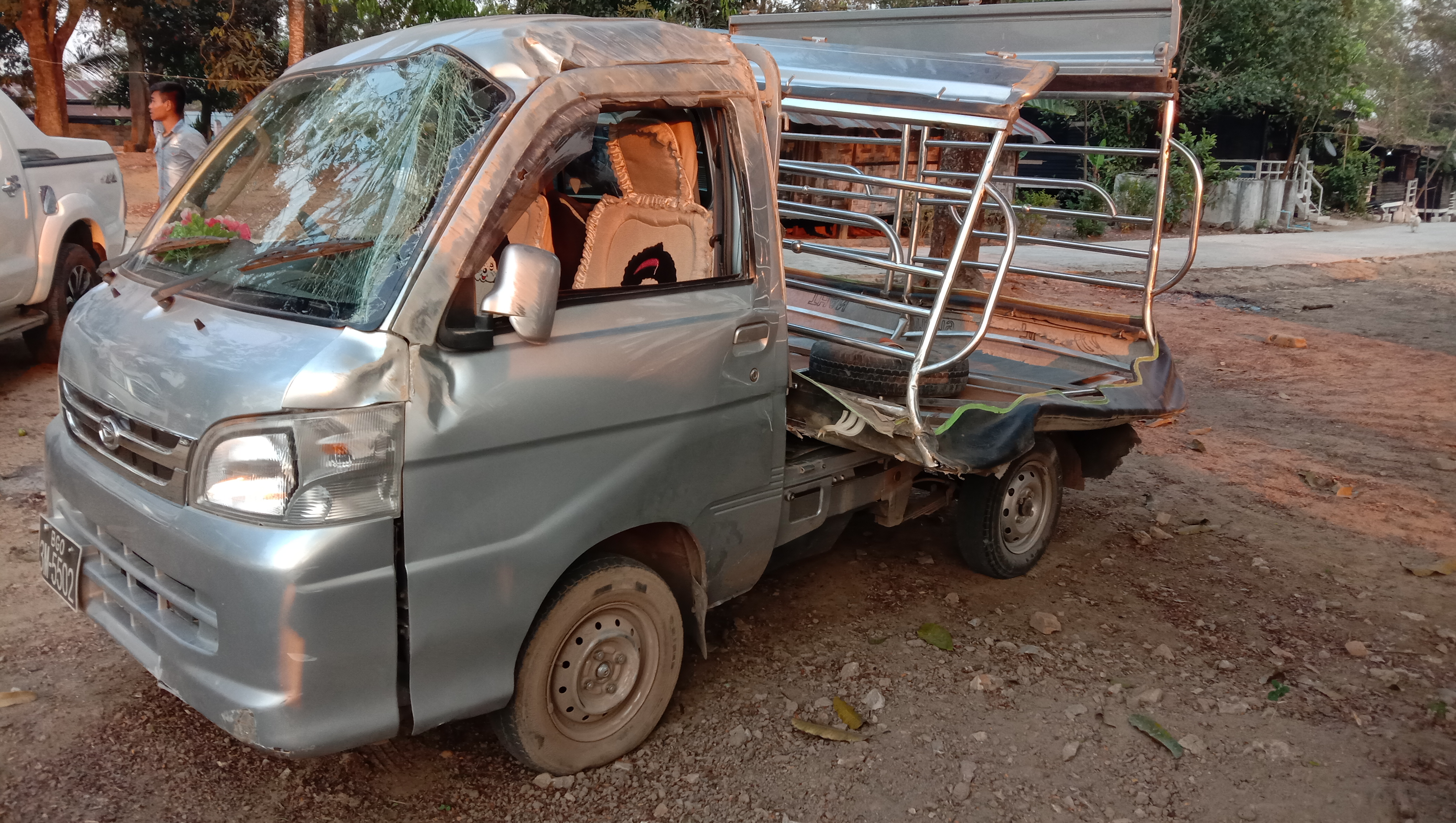 The traffic accident occurred at about 5 p.m. when a mini-truck smashed into a brick wall belonging to a man named U Hla In, 52 years old from Yankham Village and overturned after the driver lost control of the car. The vehicle was heading to Tachilek from Mongphyat and was driven by a man identified as Kenghonh. Three people aboard were hurt and one of them was seriously injured in the incident.