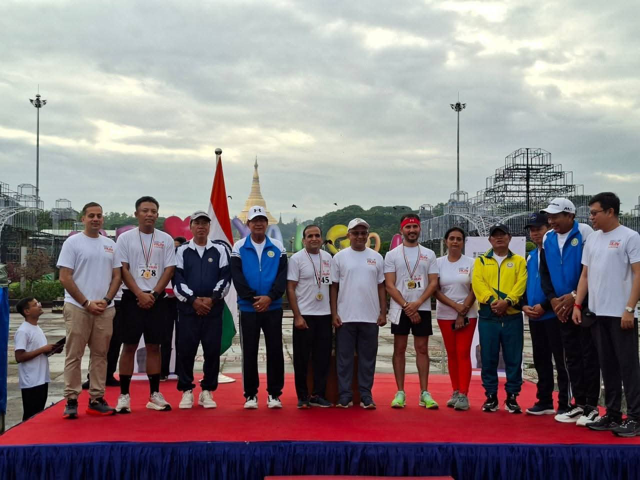 At the award ceremony following the run, Chief Minister U Soe Thein, Indian Ambassador Abhay Thakur and his wife Dr Surabhi Thakur presented trophies to the winners and praised all participants for their sporting spirit.