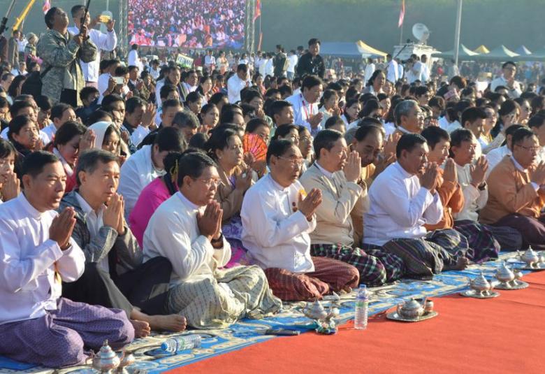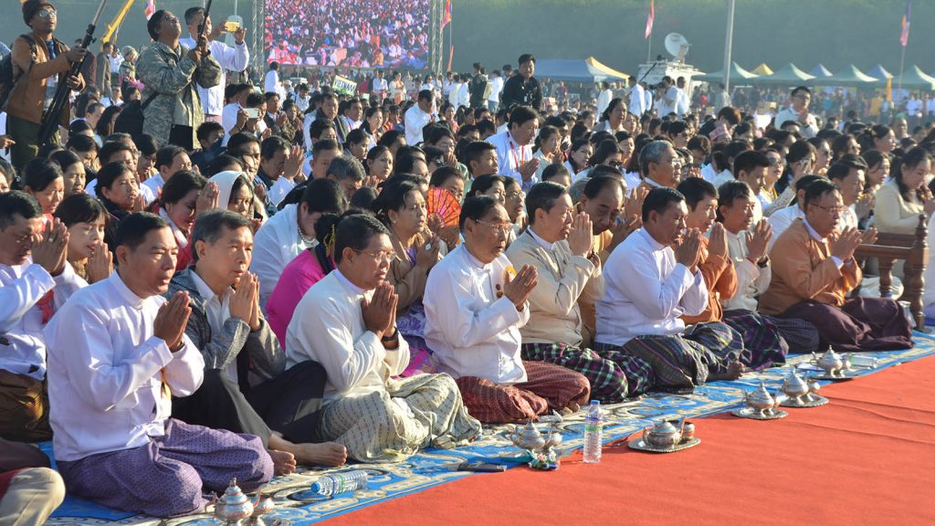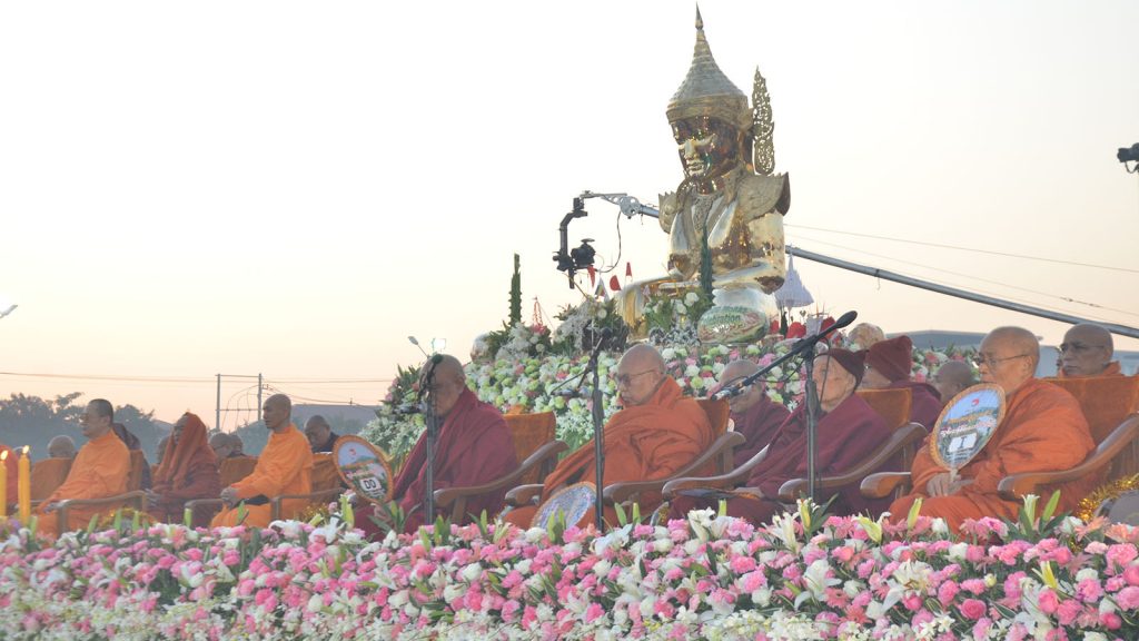 That was followed by the congregation receiving the Five Precepts from the State Sangha Maha Nayaka Committee member Sayadaw Thanlyin Min Kyaung Sayadaw Agga Maha Pandita Bhaddanta Candima Bhivumsa.