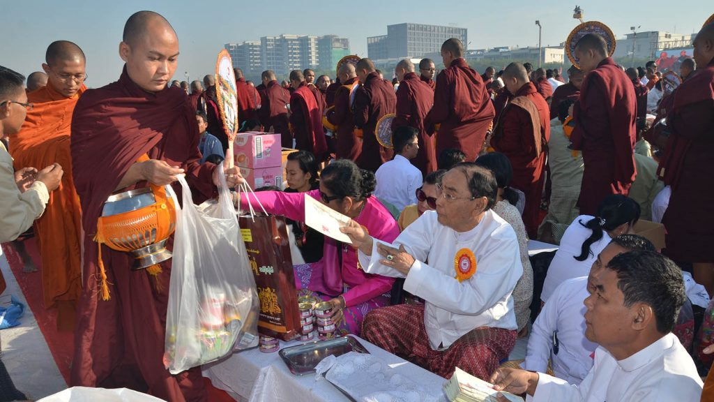 Supervised by Mandalay Region Government, Myanmar well-wishers and Thailand’s Dhammakaya Foundation jointly organized third mass alms-giving for 30,000 monks at the Chanmyathazi Airport in Mandalay yesterday.