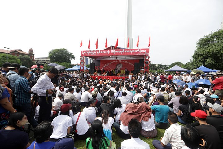 Afterwards, U Min Ko Naing from the 88 Peace and Open Society delivered the opening address, and U Mya Aye read out the six-point declaration of the 31st anniversary of 1988 pro-democracy movement.