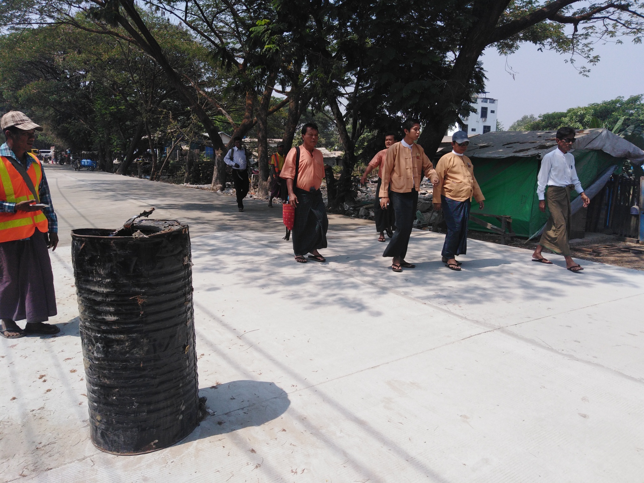Puyithu Hluttaw lawmaker U Mya Sein and Yangon Region Hluttaw lawmaker U Zin Min Htwe inspected the construction of the concrete road.— Ko Gyi Soe ( Seikkan)