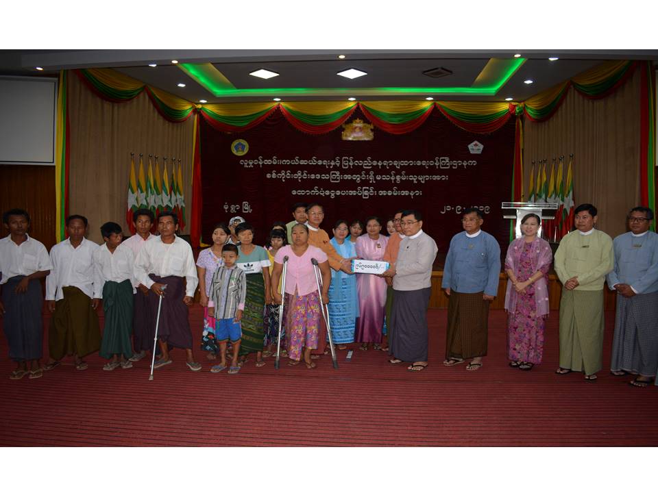 Then the regional minister for Immigration and Human Resource U Moe Kyaw Tun gave remarks. Next, the Union Minister Dr. Win Myat Aye provided a total of K 96.9 million to 3,230 disabled people in the region.