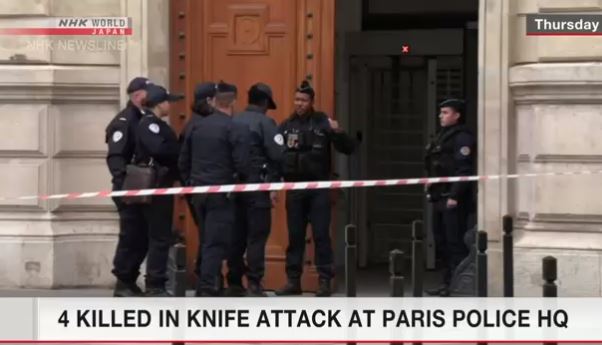French media outlets say 4 people, including police officers, are dead after a knife-wielding man launched an attack inside police headquarters in Paris.
