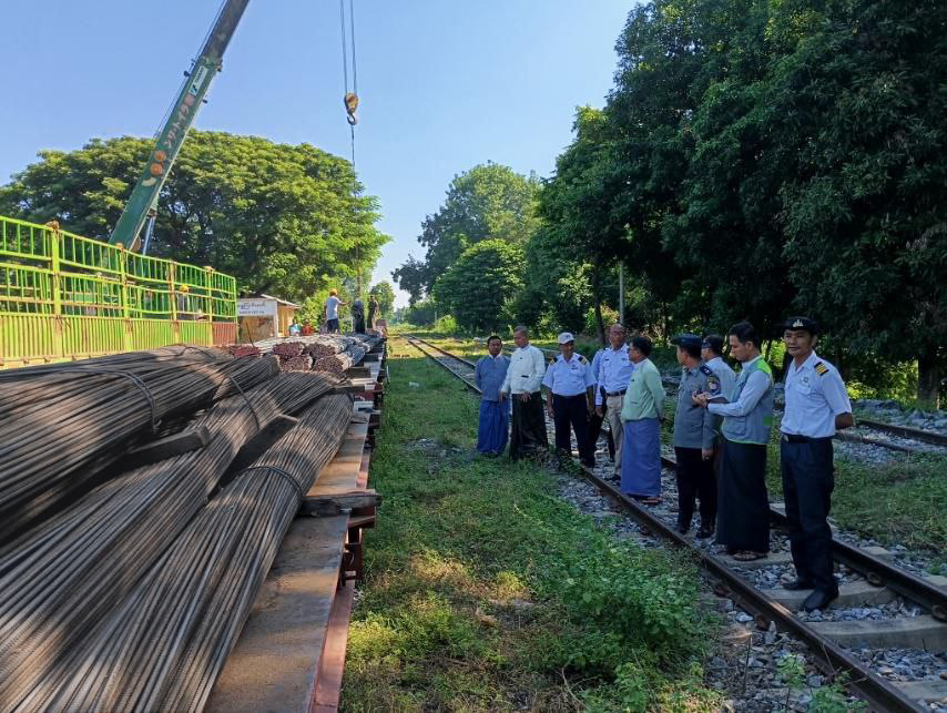 A special freight train carrying 553 tonnes of HRB 500 type steel bars and 7,000 sheets of 4 Angle 0.33 mm roofing zinc sheets (weighing 32.56 tonnes) for the reconstruction and recovery work within Sagaing Region, as well as 7,000 sheets of 4 Angle 0.33 mm roofing zinc sheets (weighing 32.56 tonnes) required for reconstruction and recovery work within Mandalay Region, arrived at Mandalay Shwekyetyet railway station yesterday morning.