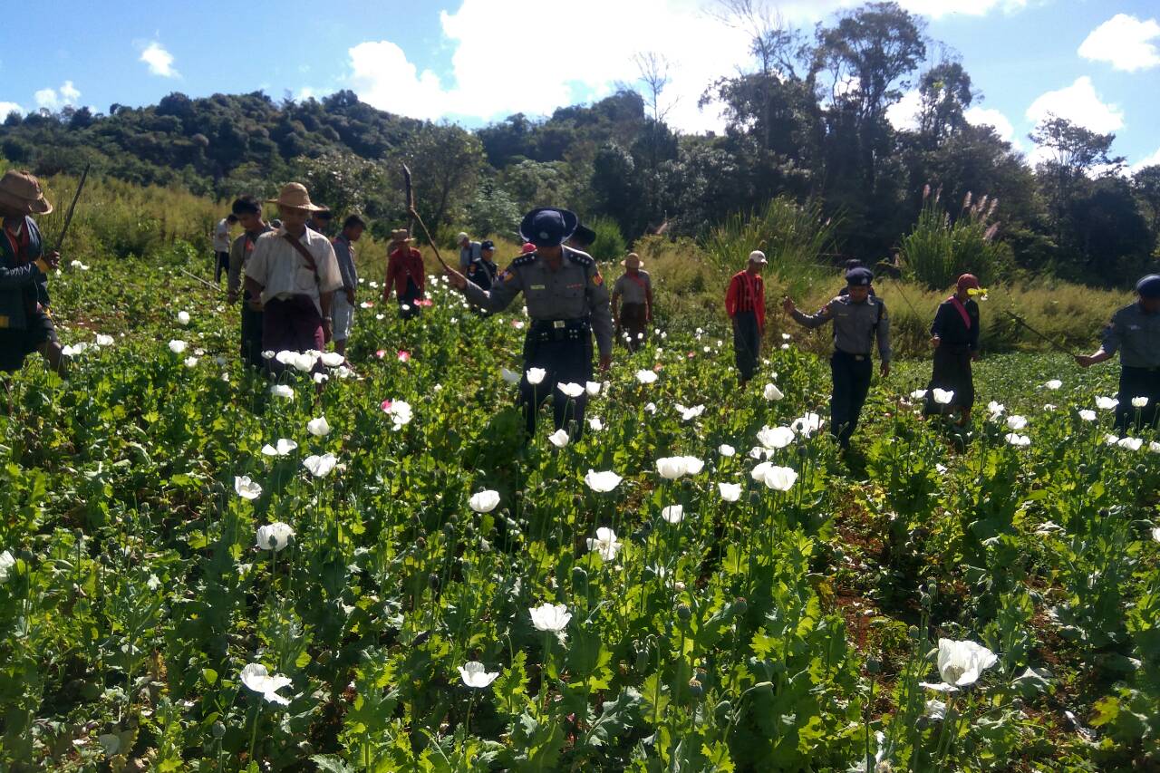 In a similar incident, police members removed 21.5 acres of poppy plantations about three miles Southeast of Heinsein Village, Panglong Township and 15 acres of poppy plantation about one mile west of Wapyung Village in Panglong Township.