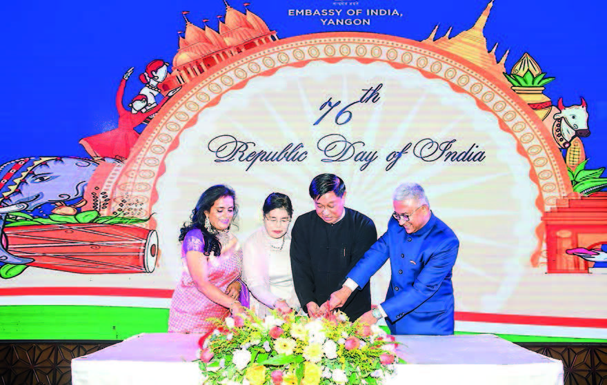 STATE Administration Council Member Deputy Prime Minis­ter and Union Minister at the Prime Minister’s Office Ad­miral Tin Aung San and his wife attended the reception ceremony commemorating the 76th Anniversary Republic Day of the Republic of India at Wyn­dham Grand Hotel in Mingala Taungnyunt Township, Yangon Region, yesterday evening.