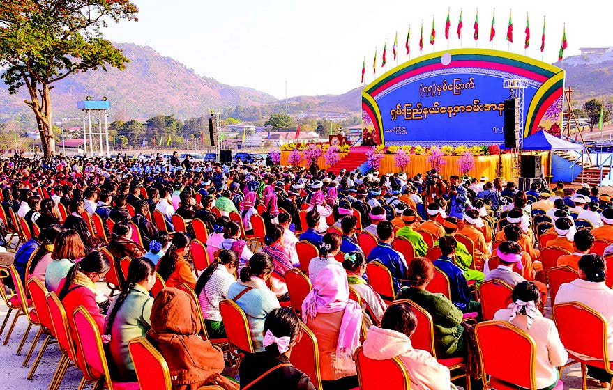 The 77th Shan State Day was celebrated at the Awayya hot-air balloon field in Taunggyi Township, Shan State, yesterday morning. The celebration was attended by members of the State Administration Council (SAC) Dr Ba Shwe and Khun San Lwin, Union Ministers U Min Thein Zan, Dr Soe Win, Jeng Phang Naw Taung, Shan State Chief Minister U Aung Aung, deputy ministers, Shan State government ministers, guests, ethnic cultural troupes, and locals.