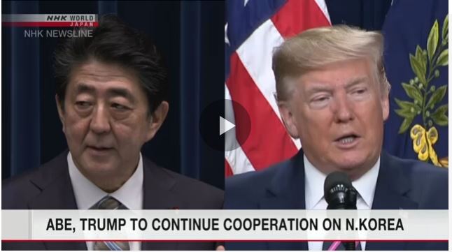 The leaders of Japan and the United States have agreed to continue close cooperation in dealing with North Korea amid Pyongyang's increased provocative stance. Japanese Prime Minister Shinzo Abe and US President Donald Trump talked over the phone for nearly 90 minutes on Saturday night, Japan time.