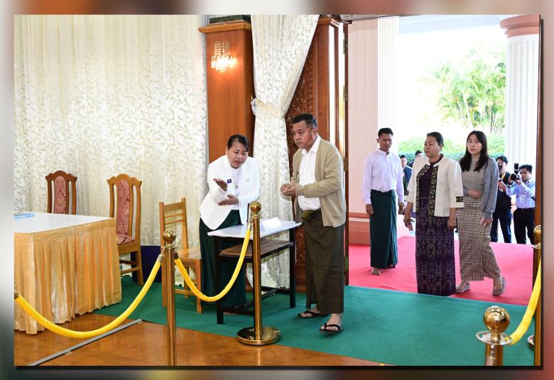 The Senior General, the Secretary of the Commission, alongside his accompanying dignitaries, observed the voting of eligible voters at relevant polling stations in Zeyathiri, Pyinmana, Ottarathiri and Pobbathiri townships in the Nay Pyi Taw Council Area and cordially greeted them.