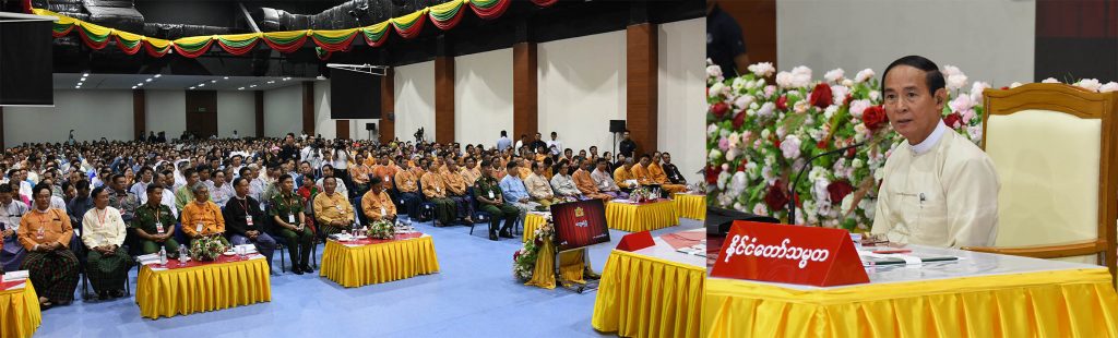 President U Win Myint met with Mandalay Region Government; Region Hluttaw; Region High Court; (Pyithu, Amyotha, Region) Hluttaw representatives; Region, and District and Township departmental officials at the Mandalay Convention Center yesterday morning and gave a policy guidance speech.