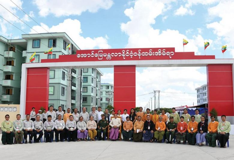 Next the President went to Aung Myay Mandalar Public Servants Housing in Mandalay Region Patheingyi Township and observed the transparent allocation of apartments through drawing of lots.