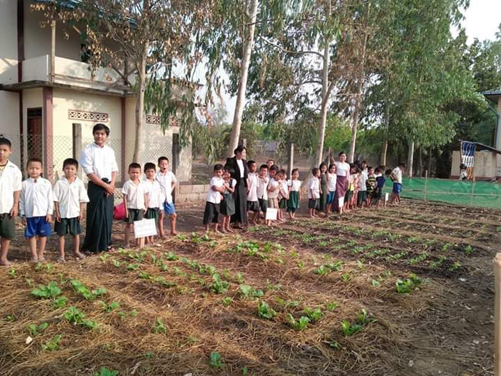 With the aim of encouraging children to become more familiar with agricultural good practices, school gardens are being implemented in the township. The officials from the Township Department of Agriculture shared agricultural good practices and methods of making natural fertilizer with the students. Then, the officials furnished agricultural aids for the needs of the school garden. Myo Min Oo (IPRD)