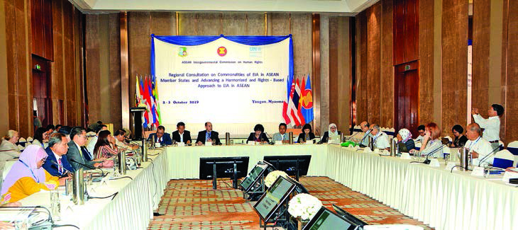 THE ASEAN Intergovernmental Commission on Human Rights (AICHR) held a Regional Consultation on Commonalities of EIA in ASEAN Members States and Advancing a Harmonized and Rights - Based Approach to EIA in ASEAN at the Melia Hotel in Yangon yesterday.