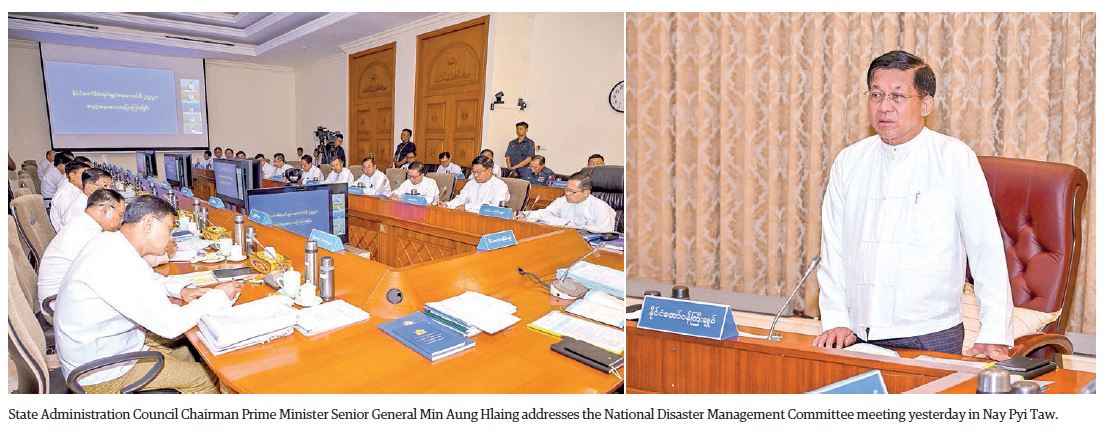 Chairman of the State Administration Council Prime Minister Senior General Min Aung Hlaing delivered a speech at the National Disaster Management Committee meeting at the Office of the SAC Chairman in Nay Pyi Taw yesterday afternoon.