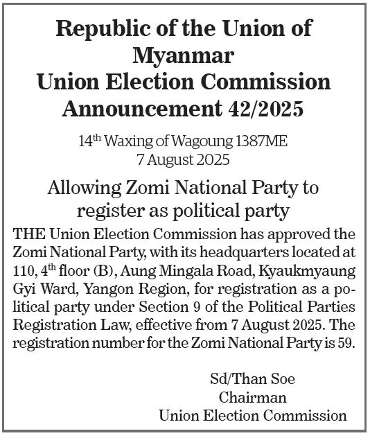 Allowing Zomi National Party to register as political party