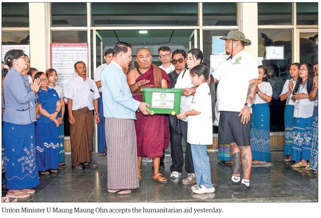 UNION Minister for Information U Maung Maung Ohn received the Alodawpyae Rescue Team led by Ashin Kumara in Nay Pyi Taw, where they delivered humanitarian aid to the Ministry of Information staff affected by the recent earthquake.