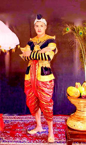 At the event, the designer made a dress of the Amarapura crown prince, who was attending a royal ceremony for Myanmar model Thant Zin Aung to wear in the traditional costume show.