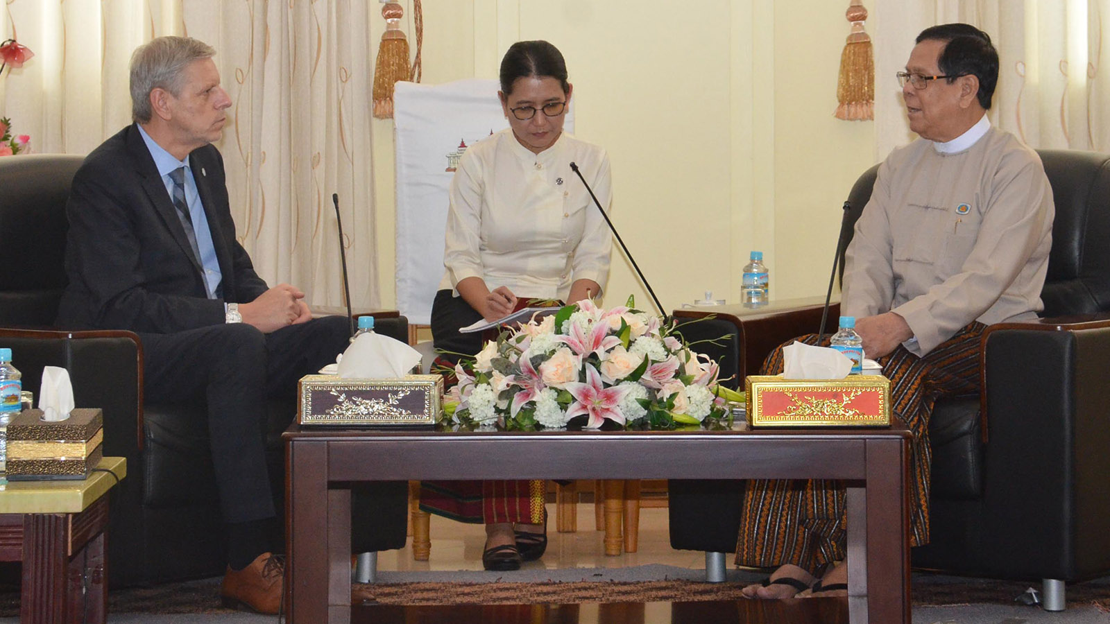 They discussed bilateral relations and promoting friendly relations between the parliaments of both countries. Also present at the meeting were Amyotha Hluttaw Public Accounts Committee member Naw Hla Hla Soe and officials from the Amyotha Hluttaw office. — MNA