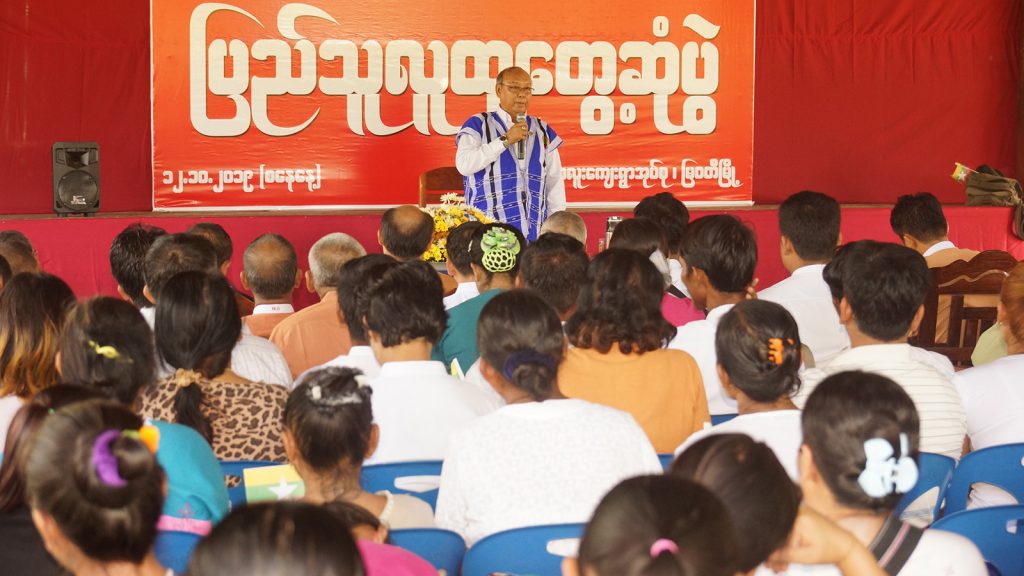Amyotha Hluttaw Speaker Mahn Win Khaing Than met with locals from Myawady Town, Phalu Village in Phalu Village church compound.