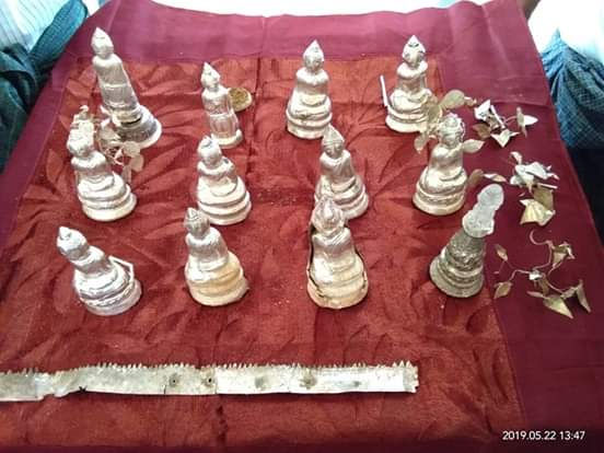 The local discovered twelve Buddha statues when he brought some bricks from an ancient collapsed pagoda that was built more than 130 years ago to be used in constructing a kitchen of a monastery. Some Buddha statues were cast in silver, depicting the word “the Waxing of Pyatho, 1249 Myanmar Era”. The newly-found ancient works of art are currently being preserved at the monastery.