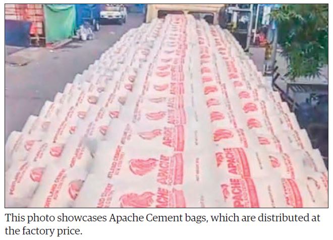 SHWE Taung Cement Com­pany said it has sold Apache Cement at the factory price of K17,000 per bag, as much as what consumers need.
