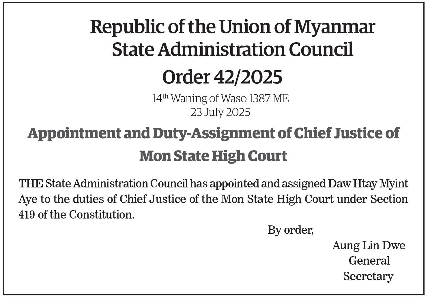 Appointment and Duty-Assignment of Chief Justice of Mon State High Court
