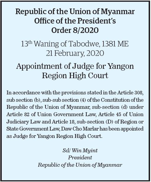 Appointment of Judge for Yangon Region High Court