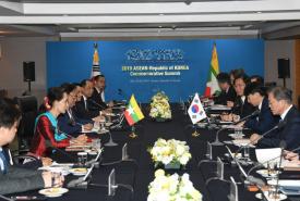 At the Summit, the State Counsellor made remarks on ASEAN-ROK collaborations in the past 30 years and discussed future potentials to promote partner relations between the Southeast Asian bloc and the East Asian nation.