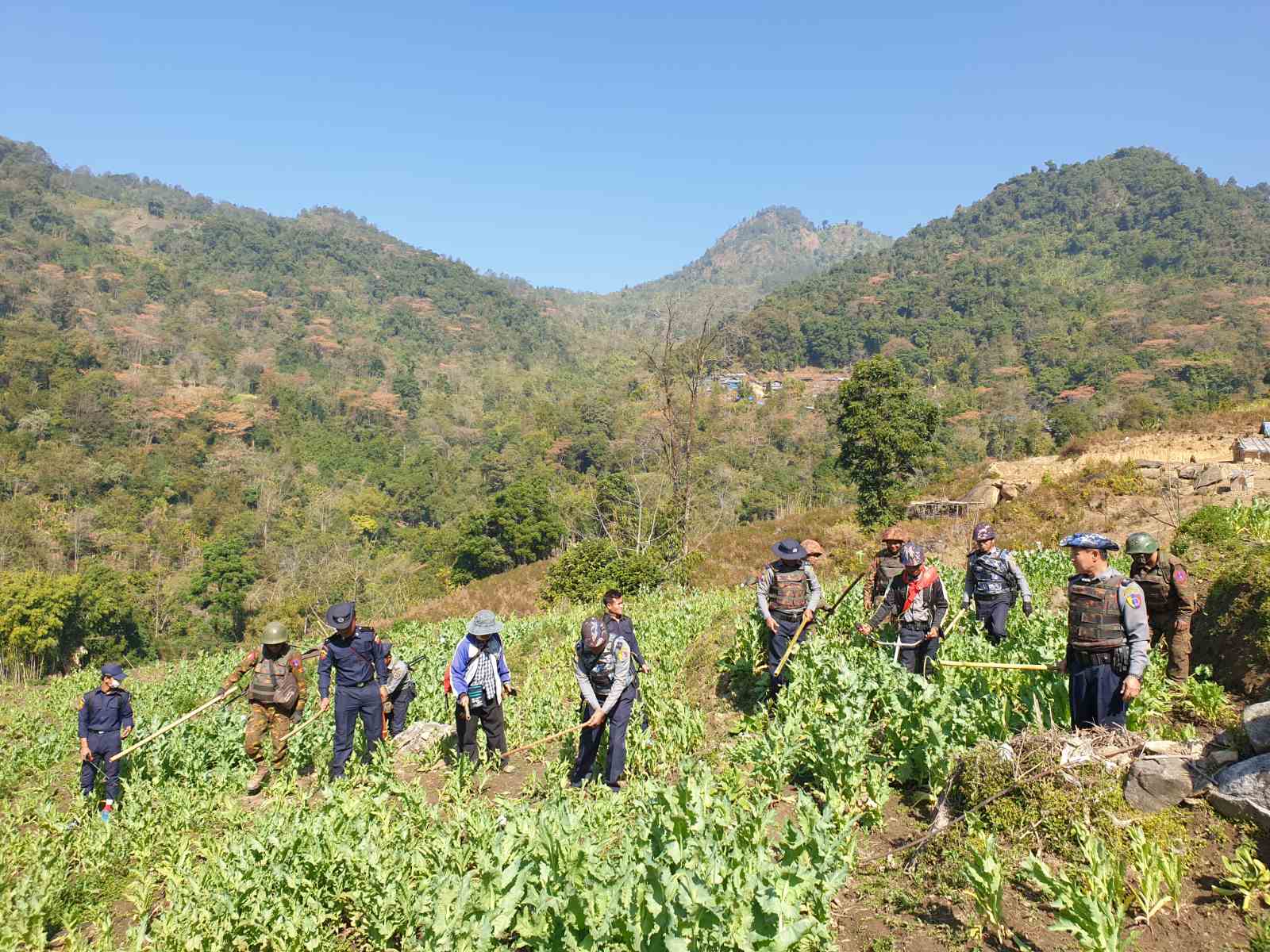 The eradication of poppy plantations has been conducted since the end of February this year in Kampaiti Town, Waimaw Township of Kachin State, according to the Myanmar Police Force.