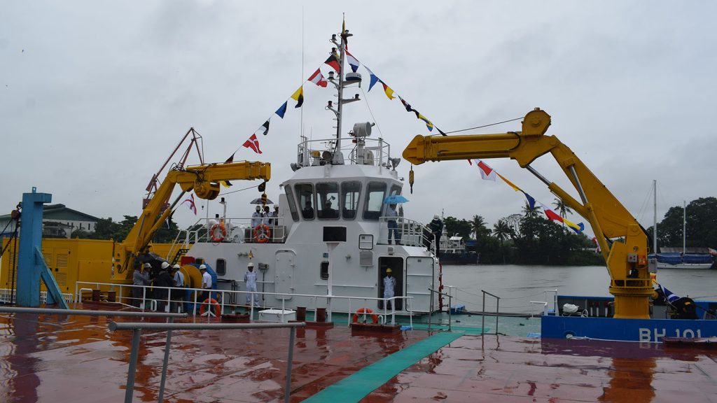 Myanma Shipyards-AMECC Joint Venture Co., Ltd delivered the Ayeyawady basin new multi-purpose vessel BH-101 to the Directorate of Water Resources and Improvement of River Systems (DWIR) under the Ministry of Transportation and Communication during a ceremony held at Myanma Shipyards-AMECC Joint Venture Co., Ltd on Bayintnaung road, Yangon, on 27 July.