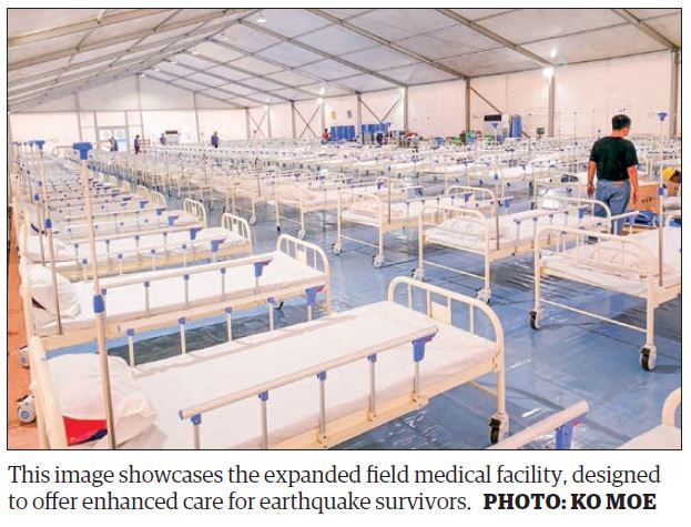 AYEYAWADY Foundation, in coordination with the Minis­try of Health, has opened two temporary hospitals in Man­dalay to assist those affected by the recent earthquake.