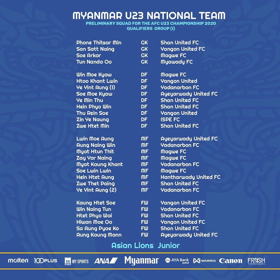 Striker Aung Kaung Mahn, midfielder Lwin Moe Aung and defender Soe Moe Kyaw were picked up by Myanmar U-23 men’s football team’s Bulgarian Head Coach Velizar Emilov Popov. Qualifiers of Group I for the AFC U 23 Championship 2020 will be hosted in Yangon in March 2019, the MFF said. Myanmar U-23 men’s football team is pooled in Group I together with Japan, East Timor, and Macau. A total of 44 teams were drawn into 11 groups of four teams.