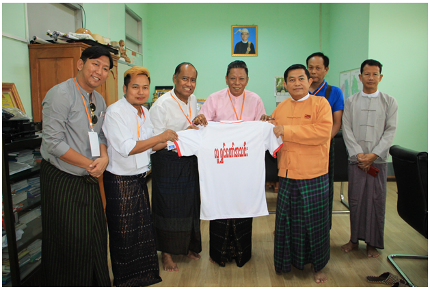 Bago region chief minister U Win Thein made a donation of K 1 million which was received by U Ayar and Pan Thee of Yangon clowns’ group at the office of the region government in the town of Bago this morning. The donation aims to help organize a fundraising football match in the town of Bago by Yangon clowns’ group for giving financial assistance to elderly clowns.