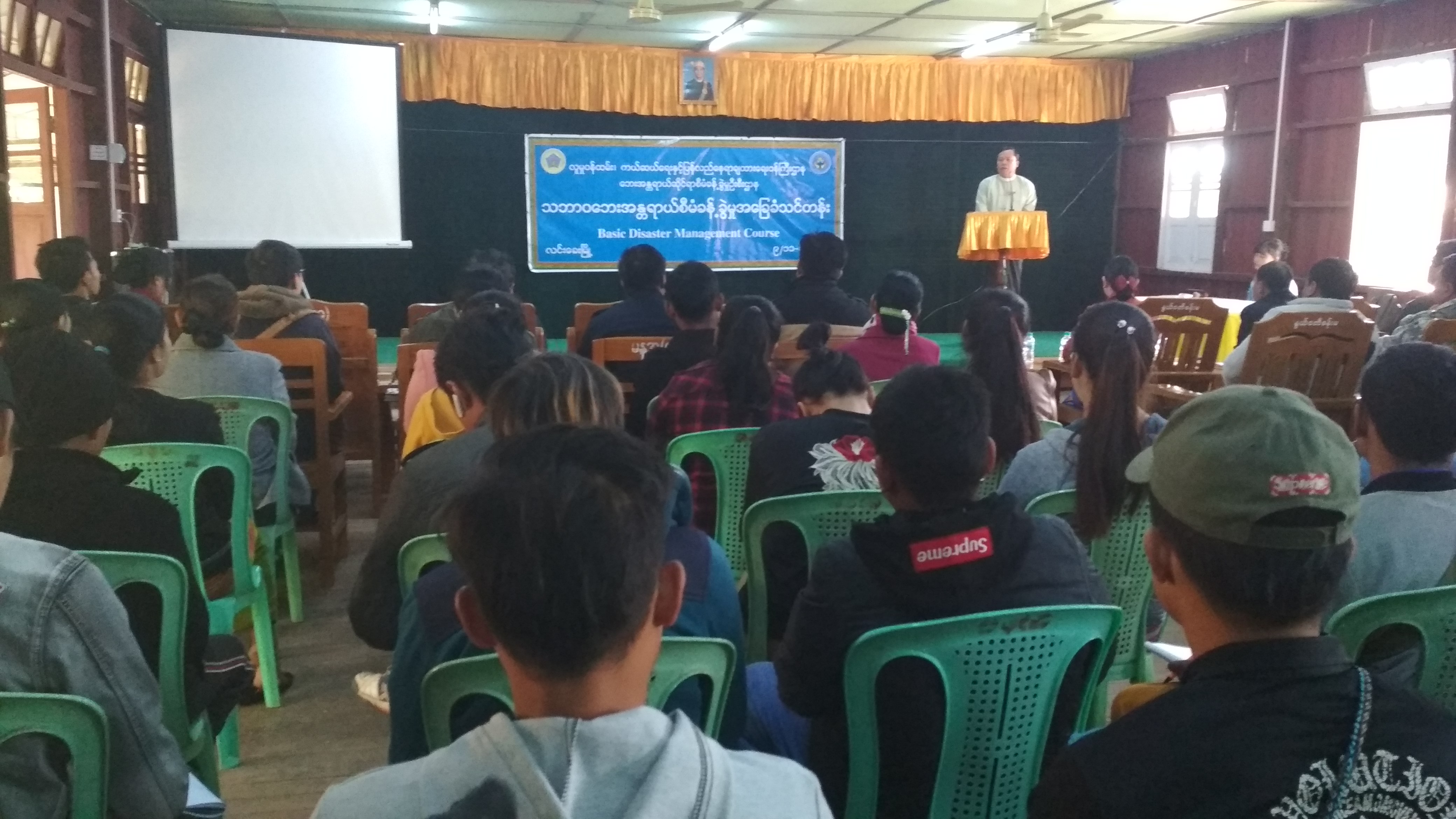 With the cooperation between the township Natural Disaster Management Department and the Township General Administration Department, a basic course on natural disaster management course was organized at the meeting hall of Lin Khay Township GAD in Lin Khay township, Shan state this morning.