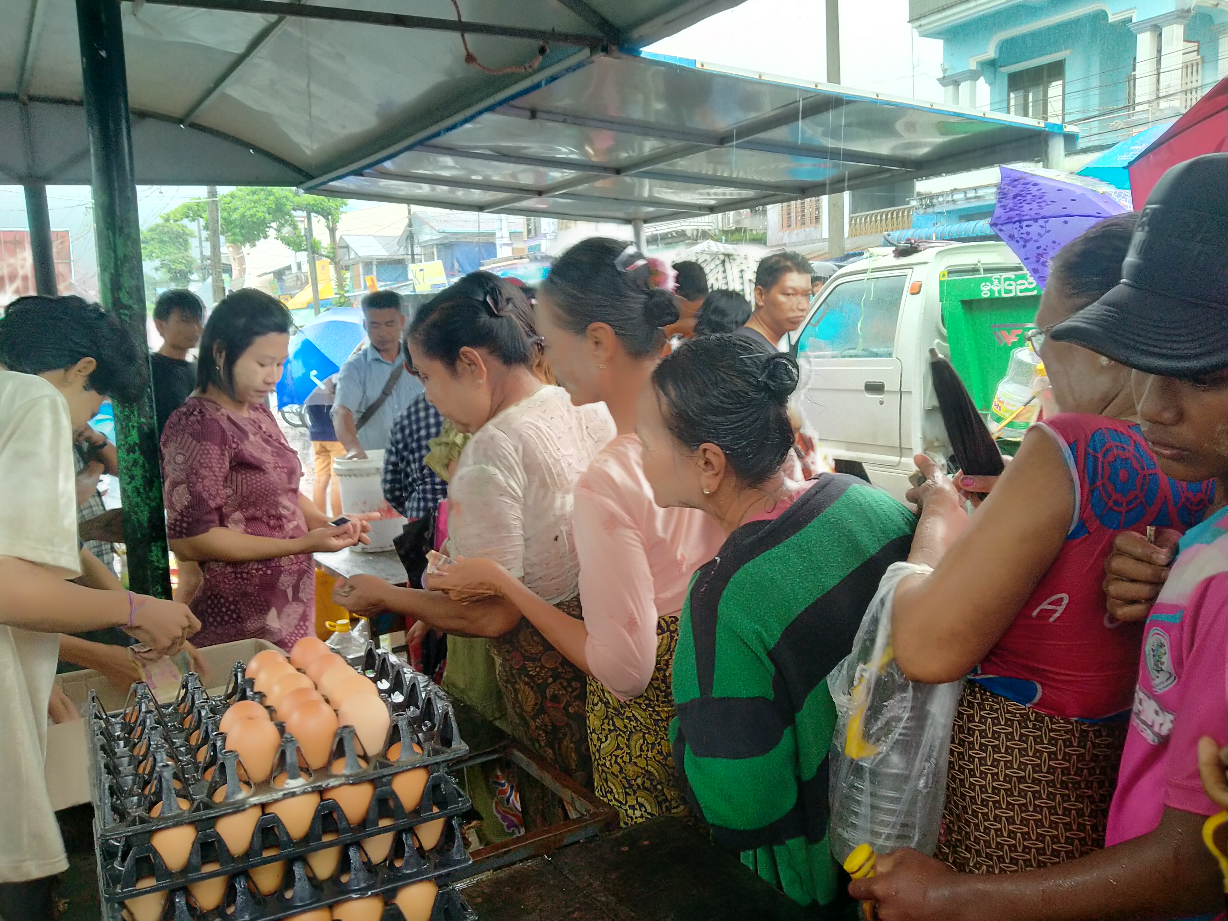 Organized by the Township Management and Administration Committee, the sale offered essential items such as one viss of coconut oil at the reference price of Ks 7,000 and four eggs for Ks 1,500—lower than local market rates.
