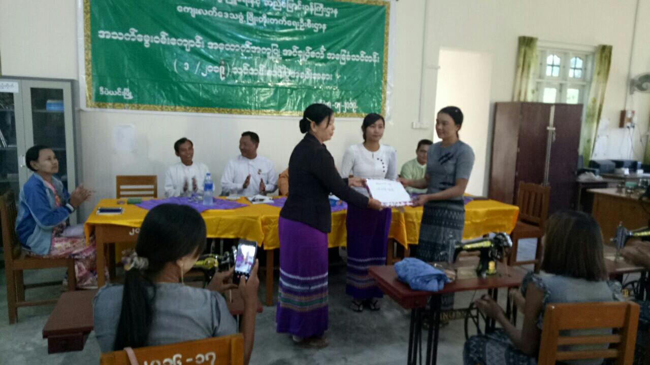 First, MP U Win Myint Aung of Pyithu Hluttaw, MP U Moe Min Win and the township management committee chairman U Nay Lin Htet made speeches. Then, U Myint, head of the district RDD encouraged the trainees to make a living applying the knowledge and skills in sewing gained during the course. Afterwards, Assistant Director U Myint Oo of the township Planning Department issued certificates to the trainees.