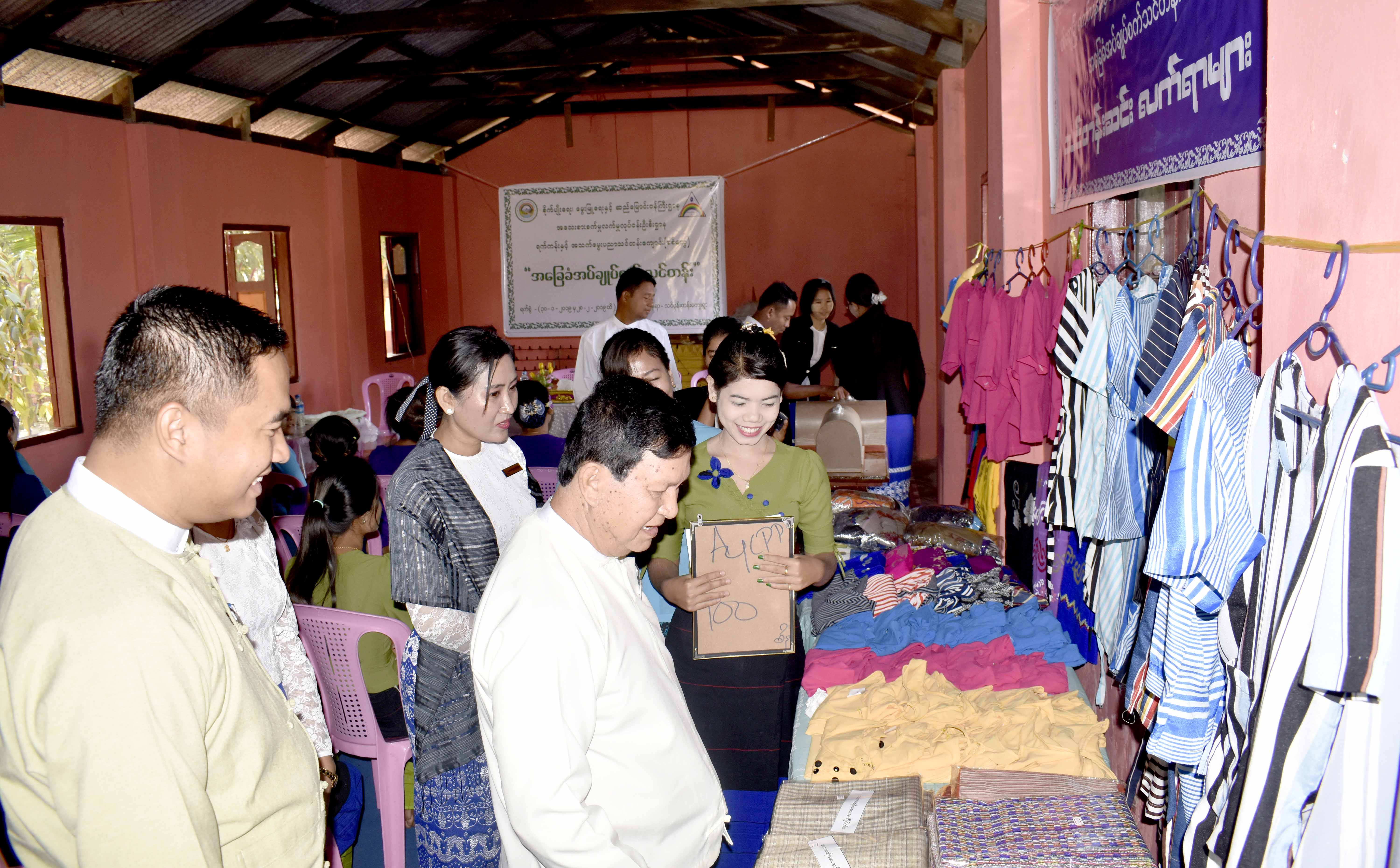 The closing of a basic tailoring course, conducted by the Department of Small Scale Industry under the Ministry of Agriculture, Livestock and Irrigation, took place at a religious building in Thinpontan Village, Sittway in Rakhine State this morning.