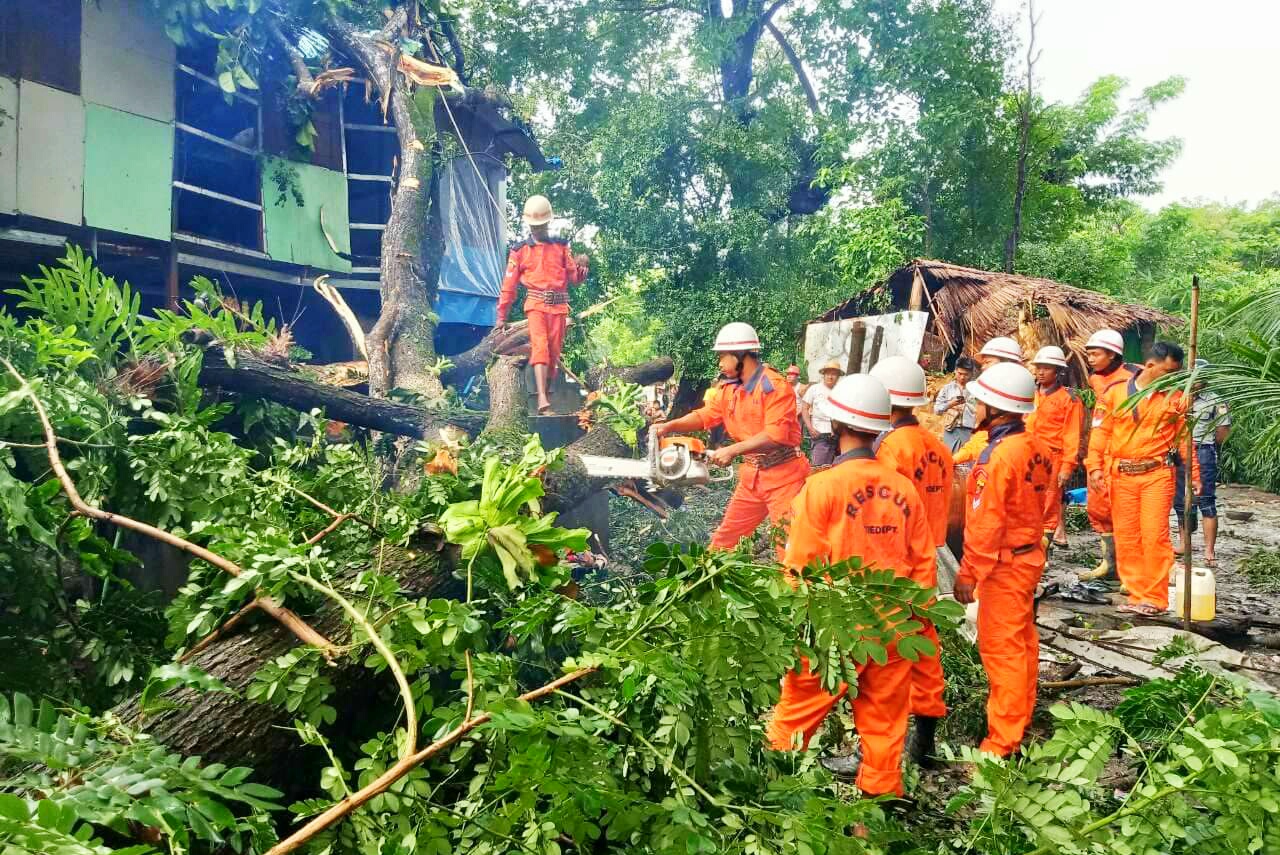 Policemen, local authorities, rescuers, firefighters, local militiamen and residents cleared off the debris and collapsed power poles. The family members from the damaged house are taking shelter at their relatives’ home.—Nan Htike (KGD)